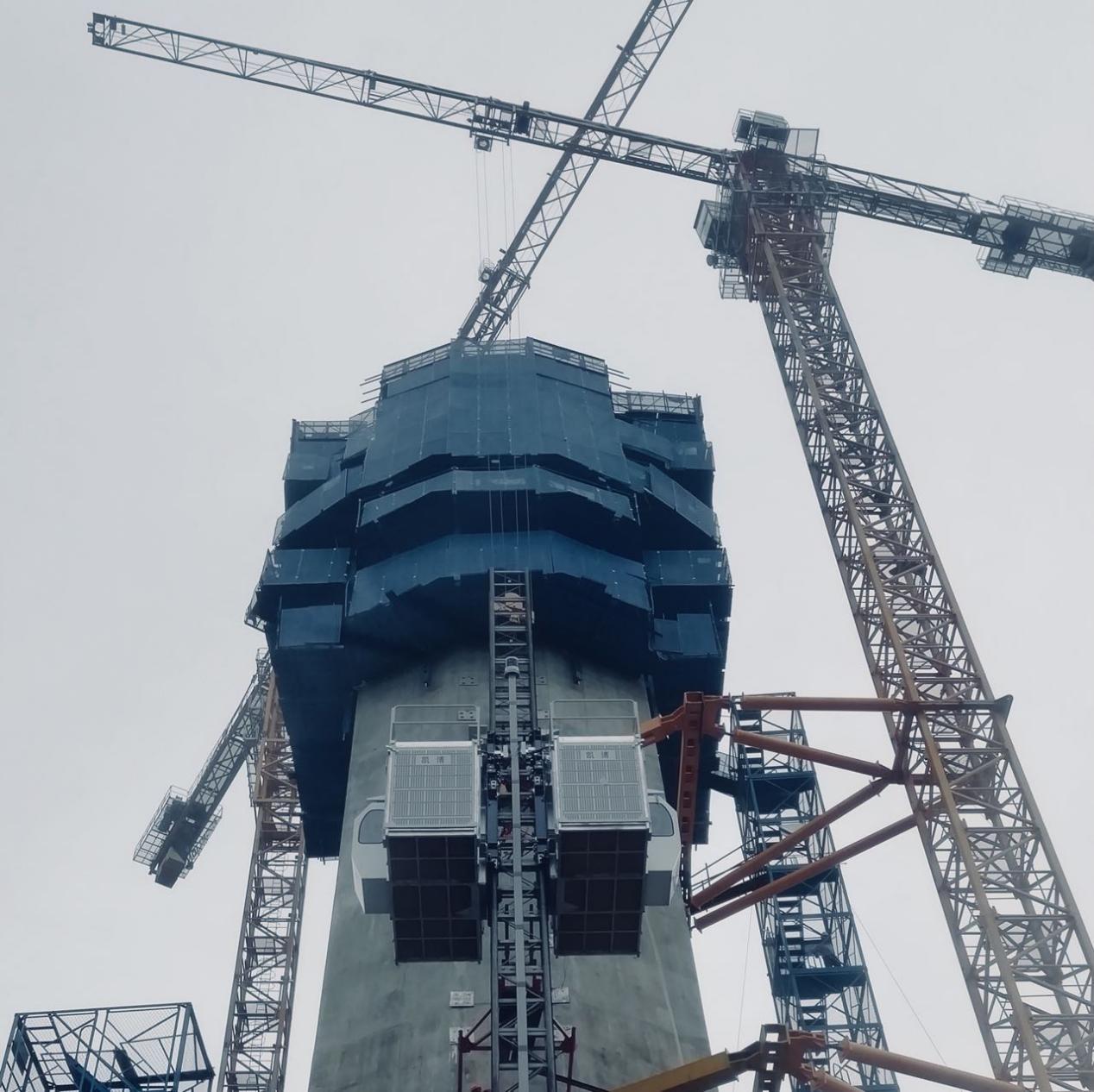 近日,廊坊凱博建設機械科技有限公司生產(chǎn)的斜、直線兩用施工升降機順利投入到廣東佛山“三水三橋”項目。此類型升降機承重架和吊籠經(jīng)過特殊設計,角度變化范圍為0~15°,在不增加任何部件的情況下,通過簡單操作即可實現(xiàn)斜、直線轉換。斜線運行時,吊籠始終保持水平,角度為0時,該機可做為普通直線升降機使用,吊籠尺寸和提升速度可根據(jù)用戶要求定制。該設備廣泛應用于煙囪、橋梁等建筑工程。