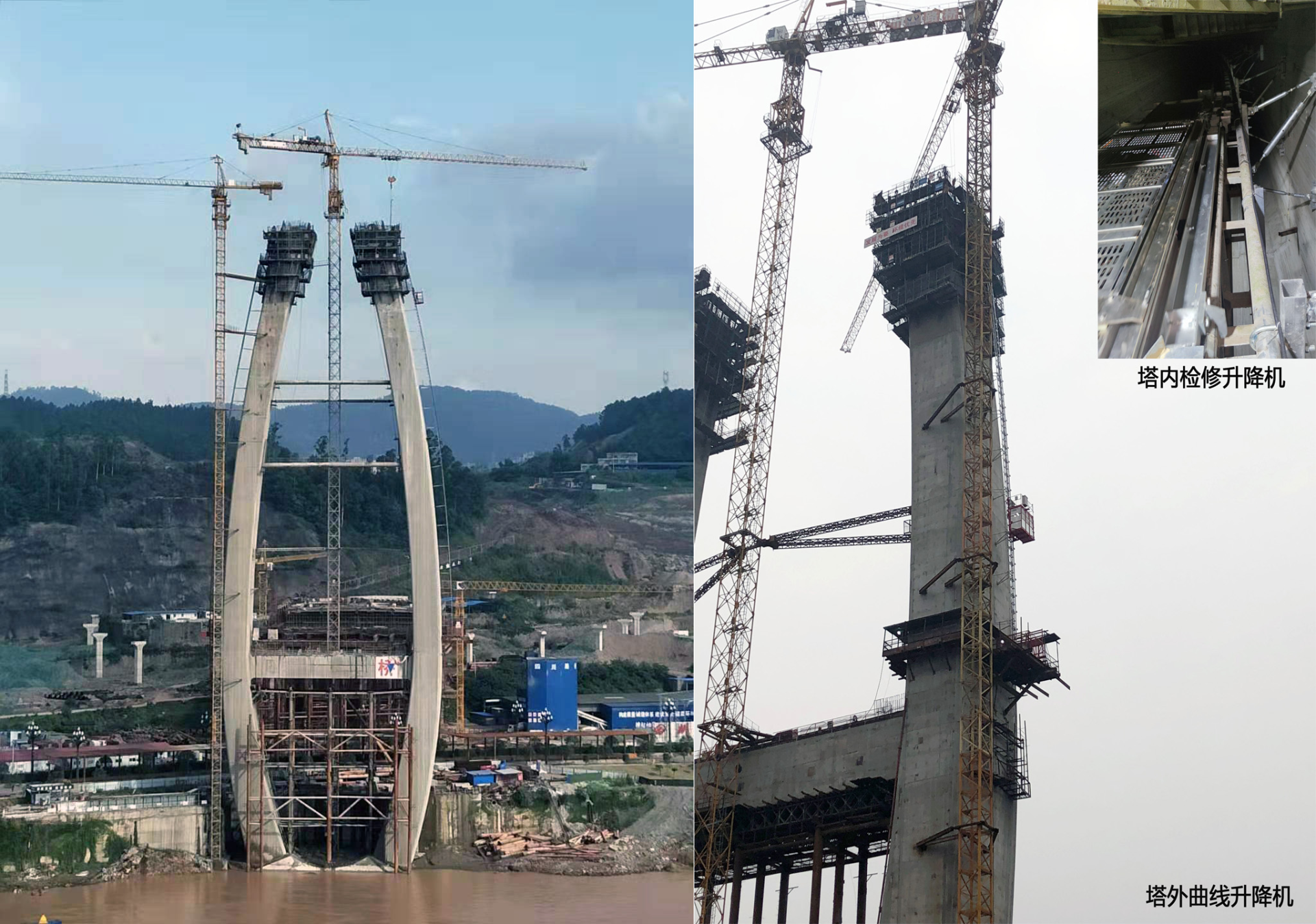 廊坊凱博建設(shè)機(jī)械科技有限公司作為大橋塔外曲線施工用升降機(jī)和塔內(nèi)檢修用升降機(jī)的供應(yīng)商,提供了運(yùn)行效率高、質(zhì)量穩(wěn)定的升降機(jī)設(shè)備,圓滿地完成施工任務(wù),成功助力大橋順利通車(chē)。