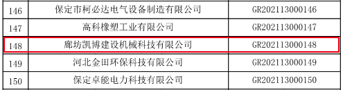 2021年10月27日,科技部火炬中心公示了《河北省 2021 年第一批備案高新技術(shù)企業(yè)名單》,廊坊凱博建設(shè)機械科技有限公司順利通過河北省高新技術(shù)企業(yè)認定。高新技術(shù)企業(yè)的取得,將進一步推動公司自主創(chuàng)新、自主研發(fā)的進程,從而快速推動公司產(chǎn)業(yè)化經(jīng)營。同時,公司將充分發(fā)揮高新技術(shù)企業(yè)的引領(lǐng)作用,積極創(chuàng)新、突破自我,為公司高質(zhì)量可持續(xù)發(fā)展提供科技支撐。